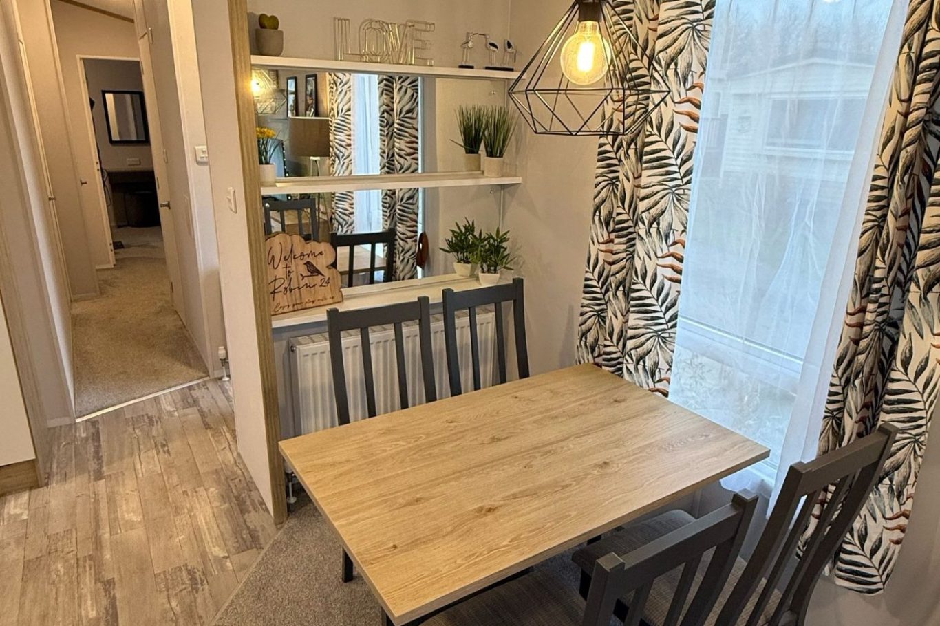 There is a good sized dining table to enjoy your meals on, food from the chippy or Chopstix. It's also somewhere to play games that we have left for you.
