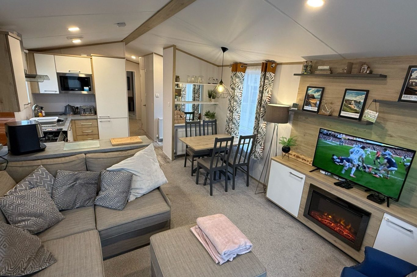 Our big L shape sofa offers a place to rest after your long coastal walks or fun around the holiday park. There is FREE internet access and a 40" smart TV with FREE access to Netflix.