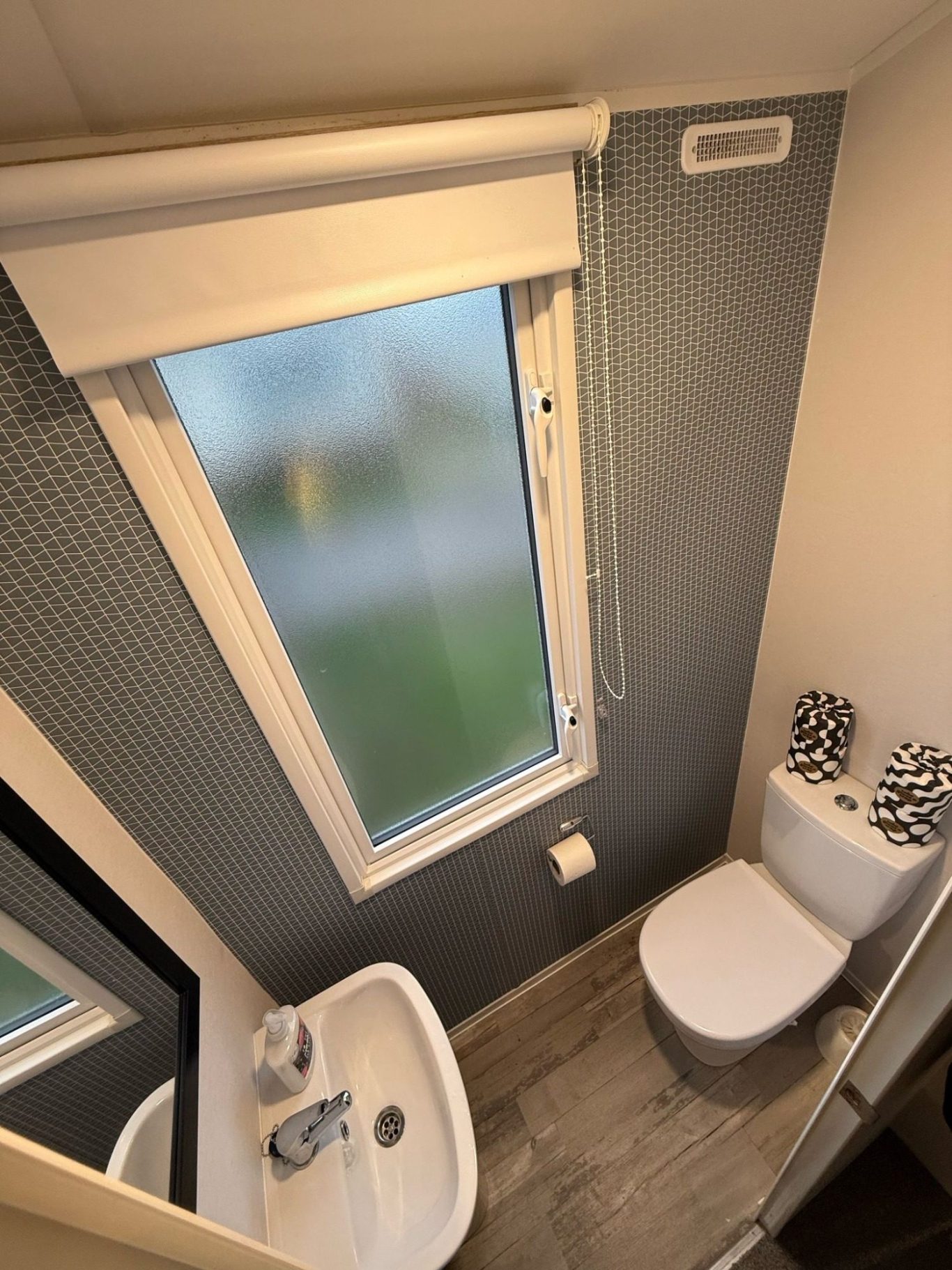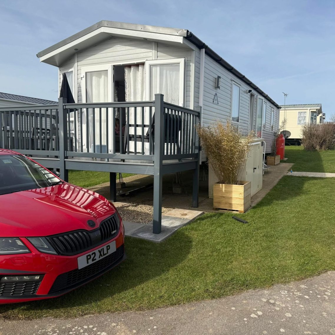 Located at the front of the caravan through the french doors is a small decked area. Big enough to sit out on those warm sunny afternoons with the family or just a gin and tonic.