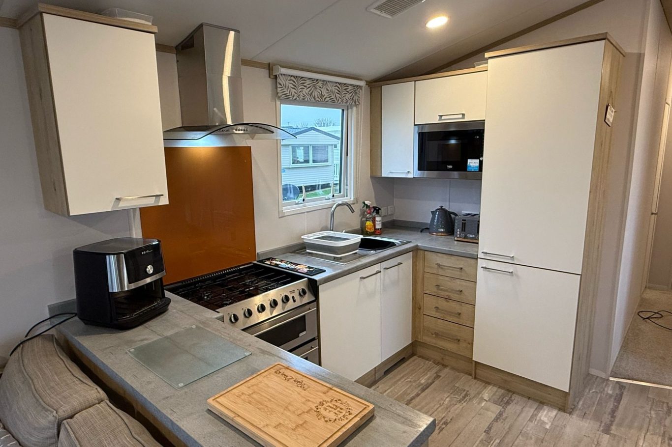 Our big L shape sofa offers a place to rest after your long coastal walks or fun around the holiday park. There is FREE internet access and a 40" smart TV with FREE access to Netflix.